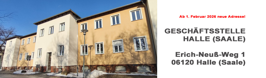 Ab dem 01.02.2026 erreichen Sie die Geschäftsstelle Halle unter folgender Anschrift:
